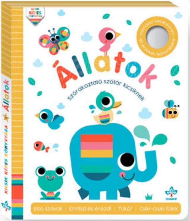 Nincs is olyan szórakoztató és színes könyvtára senkinek, mint a legkisebbeknek! A tanulás csupa játék, a felfedezés pedig izgalmas. Ez a nagyméretű, masszív könyv tele van tapintható elemekkel, felhajtható ablakokkal és filcbetétekkel, amelyek aktivitásra ösztönzik a gyermeket. Lapozgatás közben a beépített tükörből a saját arcunk néz vissza ránk.A kedves illusztrációkon színes, nagy alakú állatok szerepelnek. A kicsi megtanulhatja a nevüket és a jellemzőiket, sőt, némelyiket meg is simogathatja. Más állatok domborulatain végigvezetve az ujját érzékeli a formákat és az állatok alakját.Ez a képes szótár tökéletes a szókincs fejlesztésére, az érzékek stimulálására és a tapintás finomítására. A nagyméretű könyvet a gyermek hason fekve vagy a szülő ölében is kényelmesen forgathatja. A játékos kiegészítők felkeltik a figyelmet, és ösztönzik a gyermek természetes kíváncsiságát a világ felfedezése iránt.
