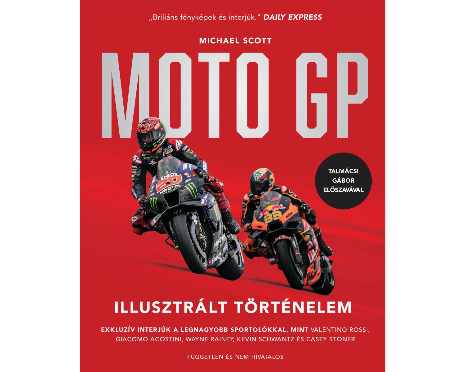 A magyar kiadás alapja a 2023-ra frissített, átdogozott hetedik kiadás, több mint 150 lenyűgöző fényképpel. A Gyorsaságimotoros-világbajnokság versenyének hiteles képes története 1949-től napjainkig. A MotoGP-t több mint 200 országban követi figyelemmel mintegy 420 millió tévénéző évről évre. Fejezetenként minden korszakot a fontosabb mérföldkövekkel, eseményekkel, műszaki fejlesztésekkel és a motorversenyzés olyan kiemelkedő alakjainak interjúival vesz górcső alá, mint John Surtees, Giacomo Agostini, Kenny Roberts, Valentino Rossi, vagy épp Casey Stoner. Exkluzív személyes betekintést és beszámolókat találhatunk arról, hogy milyen 320 km/órás sebességgel versenyezni. A MotoGP Illusztrált Történelem egy egyedülálló könyv, amely zseniálisan közvetíti ezen lenyűgöző sport felpezsdítő szellemét.A könyv magyar megjelenése a 2025-ben 33 év után újra Magyarországra látogató, a Balaton Park Circuiten rendezett MotoGP futamot Magyar Nagydíjat ünnepli. Ennek örömére a magyar kiadáshoz előszót írt Michael Scott, a szerző, Dominique Hebrard a FIM CTI műszaki vezetője és FIM MotoGP műszaki képviselője, valamint Talmácsi Gábor 2007-es MotoGP 125 cm3-es kategória világbajnoka.Emellett bemutatkozik 8 tehetséges és egyre eredményesebb magyar gyorsasági motorversenyző, köztük Rossi Moor, Varga Tibor Erik, Farkas Kevin, Kecskés Bence, Kovács Bálint, Görbe Soma, Lukács Tamás és Számadó Máté.A könyvet szerkesztői megjegyzések tarkítják, melyek az egyes eseményekhez, évszámokhoz magyar vonatkozásokat is behoznak, illetve segítik a jobb megértést.Ajánljuk a könyvet minden motorosnak, és motorsportrajongónak!